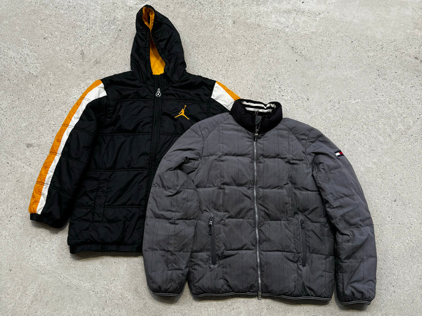 This bundle contains branded heavy jackets. The jackets are mostly for the colder seasons however you may also find some lighter jackets. The models you may find are double faced jackets, puffer jackets, wind jackets, fleece jackets and others. You will find both vintage and more modern jackets in this bundle. Brands you may find are Nike, Tommy Hilfiger, Adidas, Jordan, Reebok, Starter, Champion, NFL, Nautica, Columbia, Disney and many more.